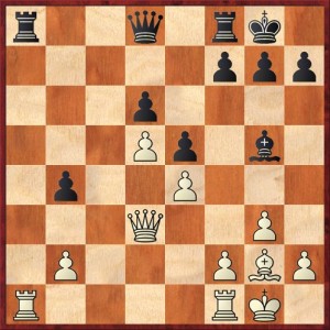 Boris is playing demonstratively quickly — he isn’t even sitting at the board! After making his move he stands up and swalks around… He is exerting psychological pressure on his opponent. But Vishy is a day-old roll. You can’t intimidate him, can’t break through his hard surface. Meanwhile, the pawn on b4 remains under attack, but its taste leaves something to be desired. [The more careful 12…a5 ; or 12…Rb8 are more common.]