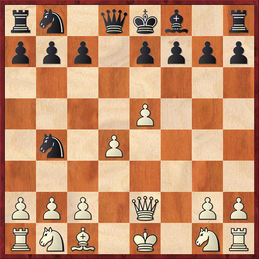 Also very interesting is 8. Qe4, “falling into Black’s trap.” After 8. … Qxd4! White of course does not play 9. Qxd4?? Nc2+ but instead plays 9. Qxb7! However, the insanity that follows is difficult to calculate. I prefer the text move because it has a clear strategic plan behind it: sacrificing a pawn for rapid development and pressure on Black’s kingside.